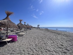 SPIAGGIA: La spiaggia privata del complesso turistico dista circa 200 mt. dalla zona centrale del villaggio, di sabbia con ghiaia sul bagnasciuga. La spiaggia è raggiungibile a piedi percorrendo una piacevolissima pineta che porta al mare |