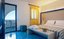 Sistemazione: 191 ampie camere e suite, dotate di ogni comfort, aria condizionata, telefono, TV, cassetta di sicurezza, frigobar (attrezzato su richiesta). Disponibili camere DOPPIE COMFORT (2 posti letto) con piccolo patio; SUITE (2/4 posti letto) doppio ambiente composto da un salottino con divano letto singolo o matrimoniale, camera matrimoniale, balcone/patio e servizio; SUITE DELUXE (3/4 posti letto), come le suite, ma con doppi servizi; SUITE DELUXE VISTA MARE, camere suite deluxe (3/4 posti letto) con doppio servizio e balcone con vista mare frontale. Sono disponibili camere (2/3 posti letto) attrezzate per diversamente abili. |