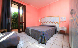 gli appartamenti, a piano terra o al primo piano, sono realizzati con un alto grado di finiture. Perfettamente arredati, sono tutti dotati di servizi con doccia, TVsat, telefono, aria condizionata autonoma, cucina attrezzata (anche con frigorifero e forno microonde), veranda coperta attrezzata; alcuni con 2ª doccia esterna e cassetta di sicurezza privata. Riassetto giornaliero della camera con cambio biancheria da bagno. Appartamenti destinati al soggiorno in formula hotel: Family Room 2/3 posti incluso infant, primo piano (Mq 35): nasce come monolocale, ma con l'arredamento è stato possibile creare due ambienti separati. Si trova nel Comparto A del villaggio ed è composta da soggiorno con angolo cottura attrezzato con mini frigo, 2 piastre elettriche e forno a microonde, TV color, divano letto doppio con materassi ortopedici, camera matrimoniale, telefono e cassetta di sicurezza privata; bagno con box doccia e asciuga-capelli; due verande di cui una attrezzata per mangiare anche fuori e l'altra fornita di stendibiancheria.  Bilocale tipo E 2/4 posti letto incluso infant, piano terra (Mq 45) si trova nel Comparto A del villaggio ed è composto da soggiorno con angolo cottura attrezzato con mini frigo, 2 piastre elettriche e forno a microonde, TV color, divano letto doppio e armadio letto con materassi ortopedici, camera matrimoniale, telefono e cassetta di sicurezza privata; bagno con box doccia e asciuga-capelli; una piacevole veranda attrezzata per mangiare anche fuori e una seconda veranda fornita di doccia esterna e stendibiancheria. Camere singole non previste.