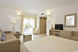 Descrizione e servizi: Il complesso immerso nel verde (196 unità abitative tra camere hotel e bungalow) è formato da un corpo centrale recentemente rinnovato, disposto su 2 livelli serviti da ascensore, dove sono ubicate le camere hotel, la hall, il ristorante, ed il bar centrale. Due schiere di bungalow in muratura, dislocati verso il mare nel verde antistante, completano la struttura. Le camere: sono tutte dotate di aria condizionata, TV, telefono, frigo, servizi con doccia, cassetta di sicurezza e asciugacapelli; la maggior parte con balcone. I Bungalow: sono tutti dotate di aria condizionata, TV, telefono, frigo, servizi con doccia, cassetta di sicurezza e asciugacapelli e dispongono di veranda attrezzata.