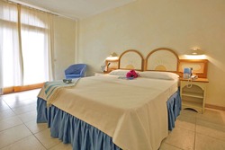 Sistemazione: le 171 camere sono distribuite tra il corpo centrale e la zona della marina verso il mare, si dividono in doppie, matrimoniali, triple e quadruple (alcune con letto a castello). Sono tutte dotate di servizi privati con doccia e asciugacapelli, aria condizionata autonoma, mini-frigo, TV. Le camere “Balcony”, solo nella zona “Sa Posada”, sono disponibili con supplemento e dispongono di un balcone (ai piani superiori) o di un patio (piano terra), attrezzato con sedie. Le Family, tutte situate nella zona “Sa Marina”, sono costituite da camera matrimoniale e soggiorno con divano letto matrimoniale (in alcuni casi con letto a castello) e bagno, soluzione ideale per le famiglie (max 4 persone incluso infant). Sono disponibili camere per ospiti diversamente abili.